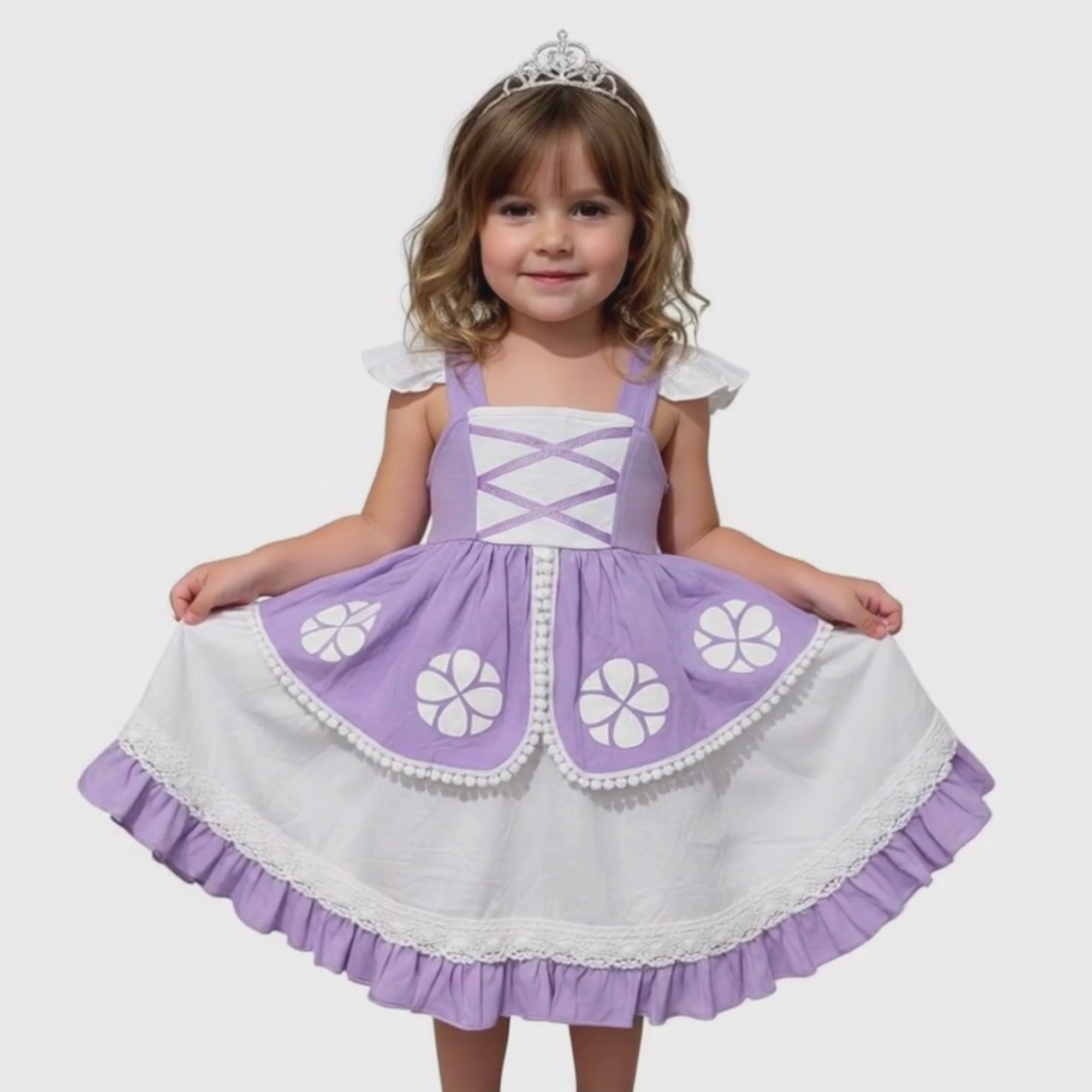 - Soft, flowing fabric in princess' signature lavender hues
